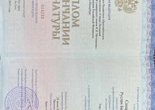 В 2023 году окончил Северо-Западный государственный медицинский университет им. И. И. Мечникова (г.Санкт-Петербург) по специальности «Хирургия».