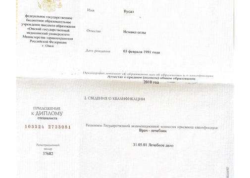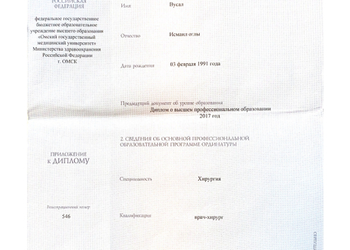 В 2020 году окончил Омский государственный медицинский университет (ординатура) по специальности «Хирургия».